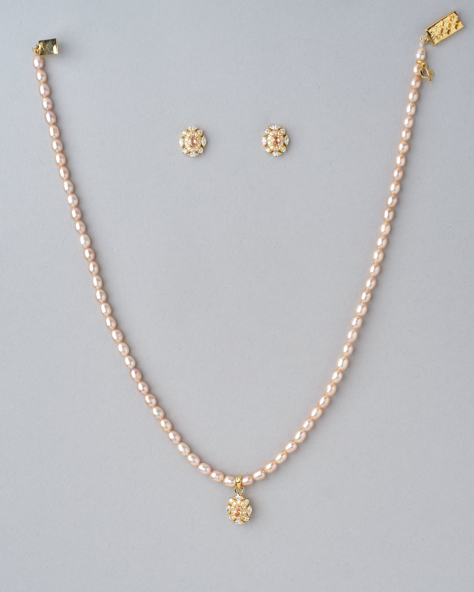 Blush-pink stones and gold accents create a soft yet majestic look in this elegant necklace sets ideal for weddings, receptions, and anniversaries