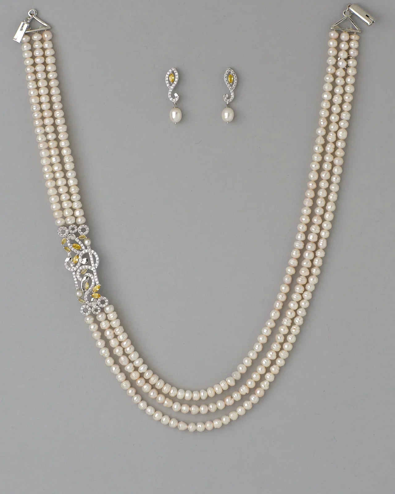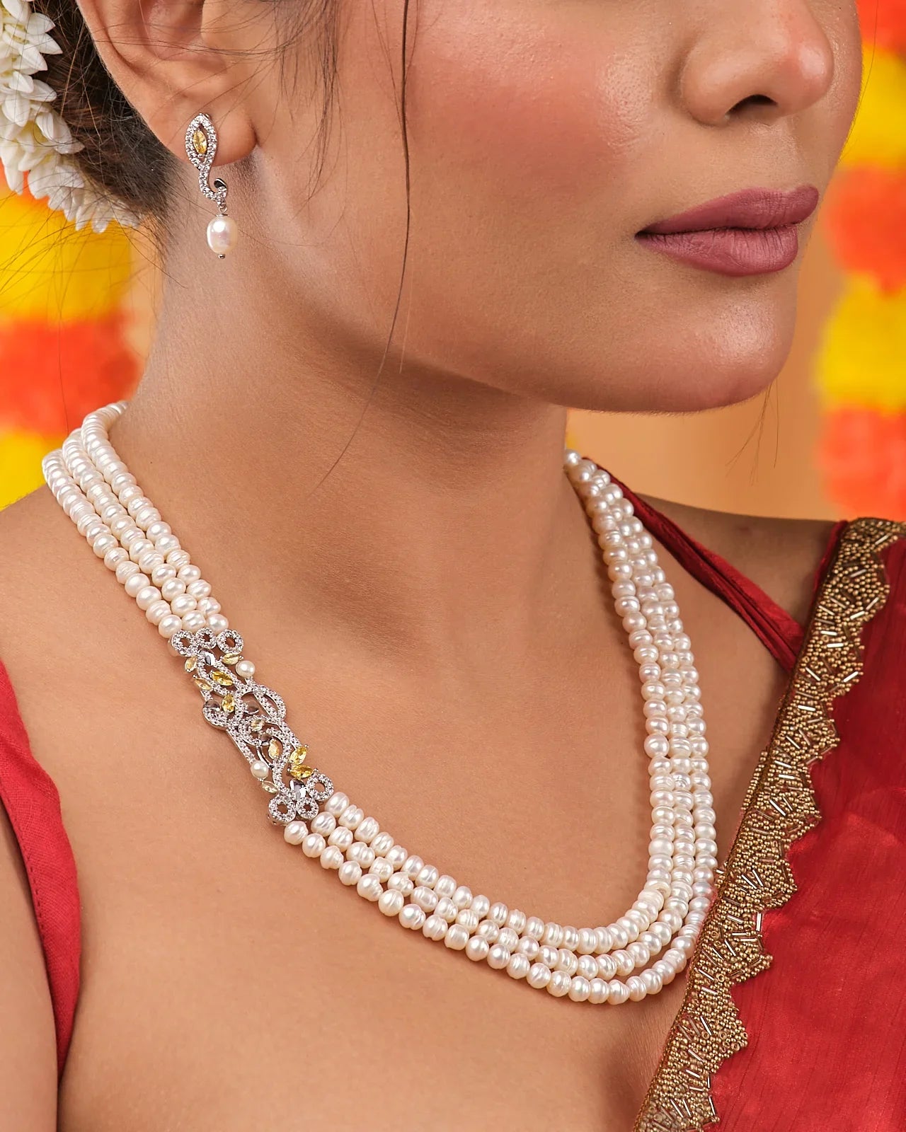 Pearls blended with polki stones in a grand design.Ideal for weddings and Diwali events.