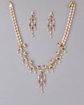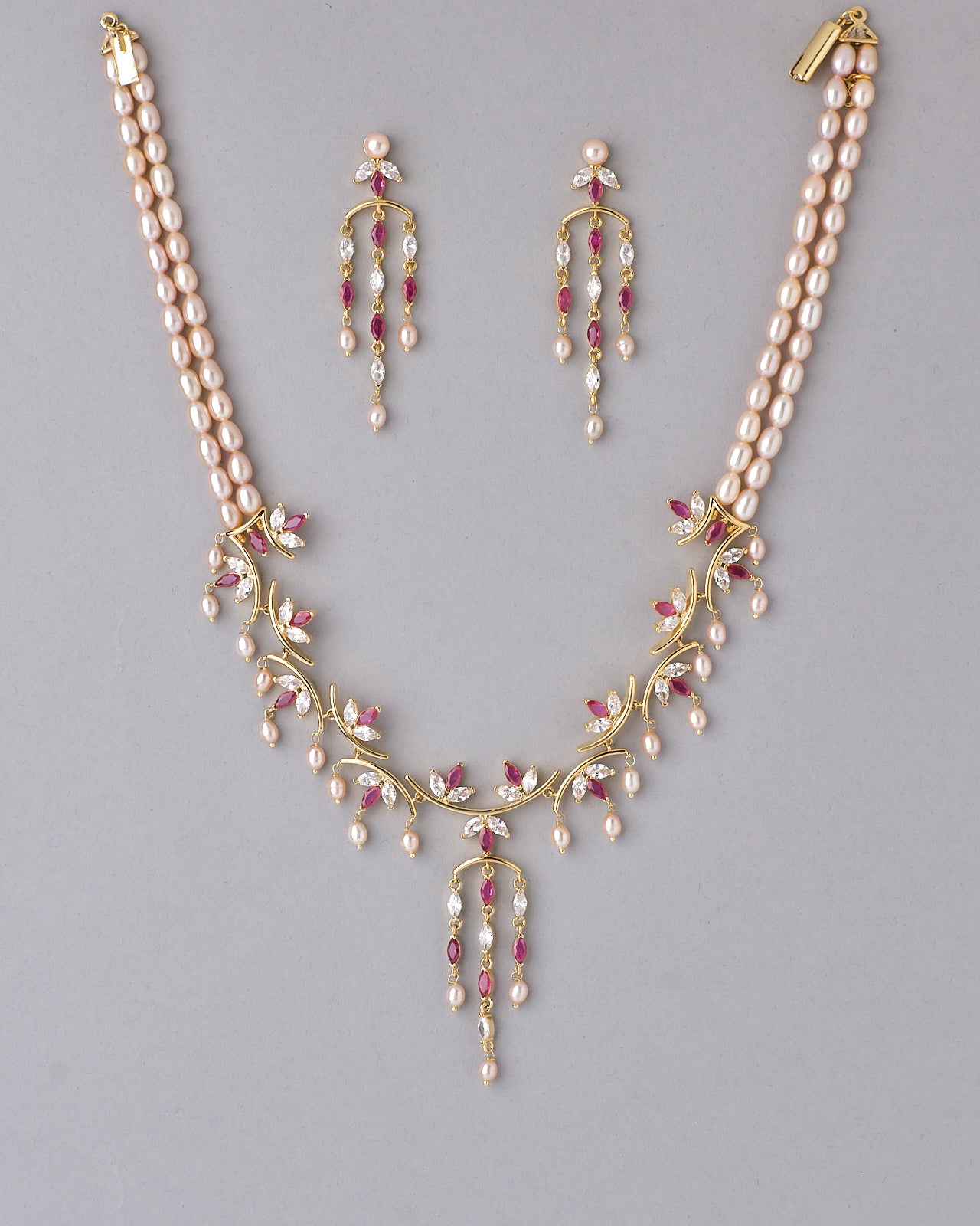 Ruby Accent Floral Pearl Traditional Necklace Set