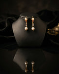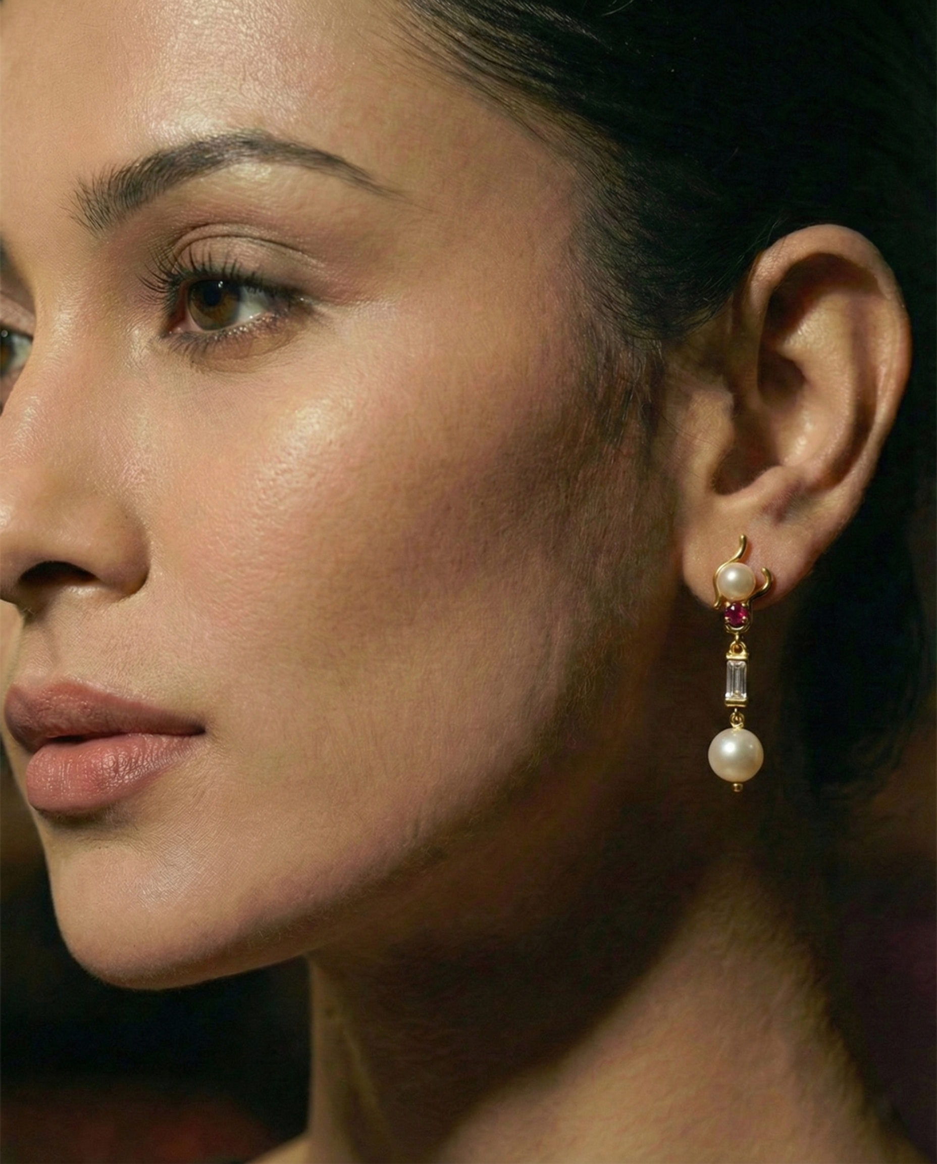 Sleek Ruby and Pearl Dangle Earrings