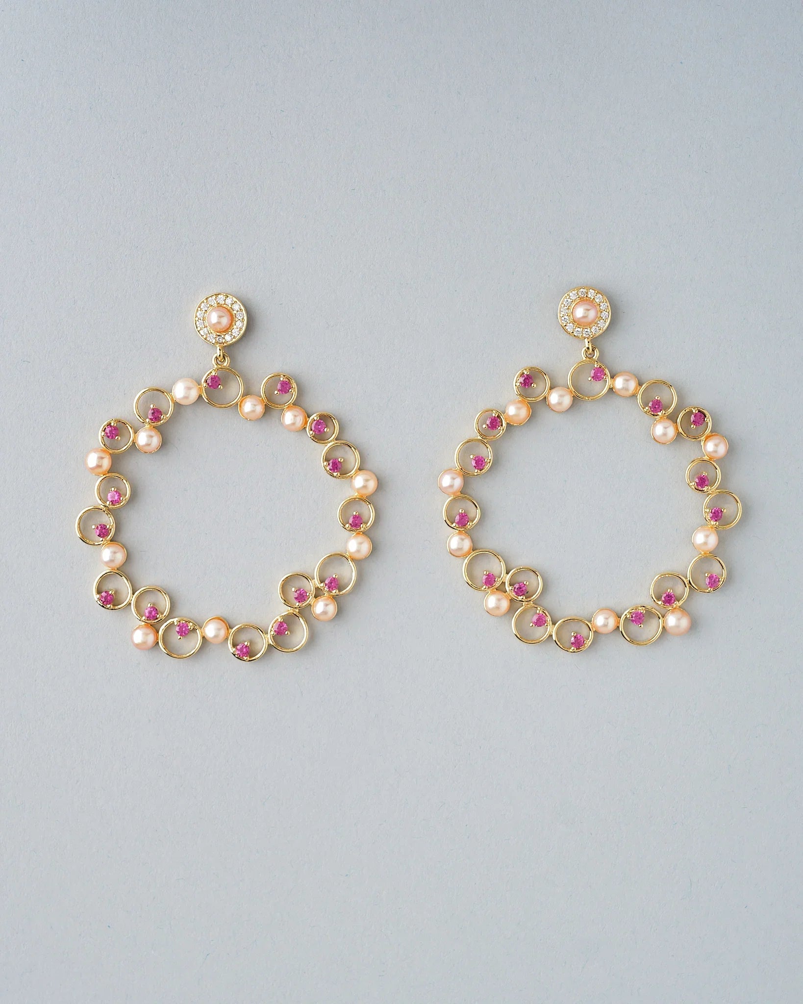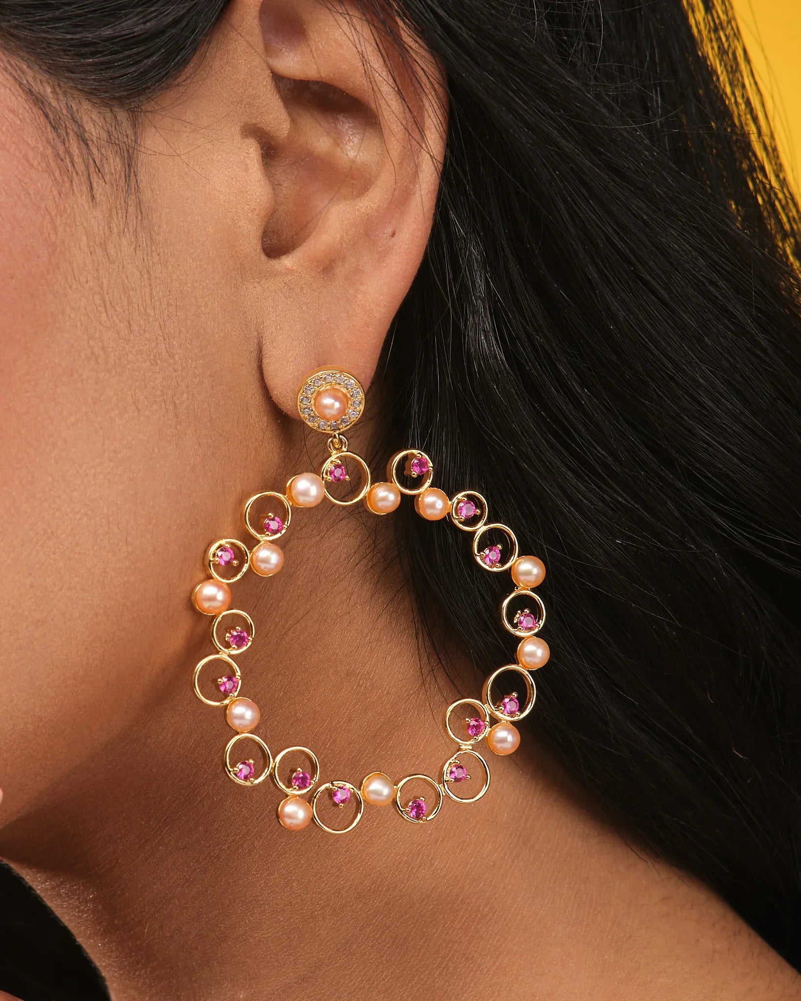 These timeless jhumkas blend heritage design with the sparkle of CZ stones and the grace of natural pearls