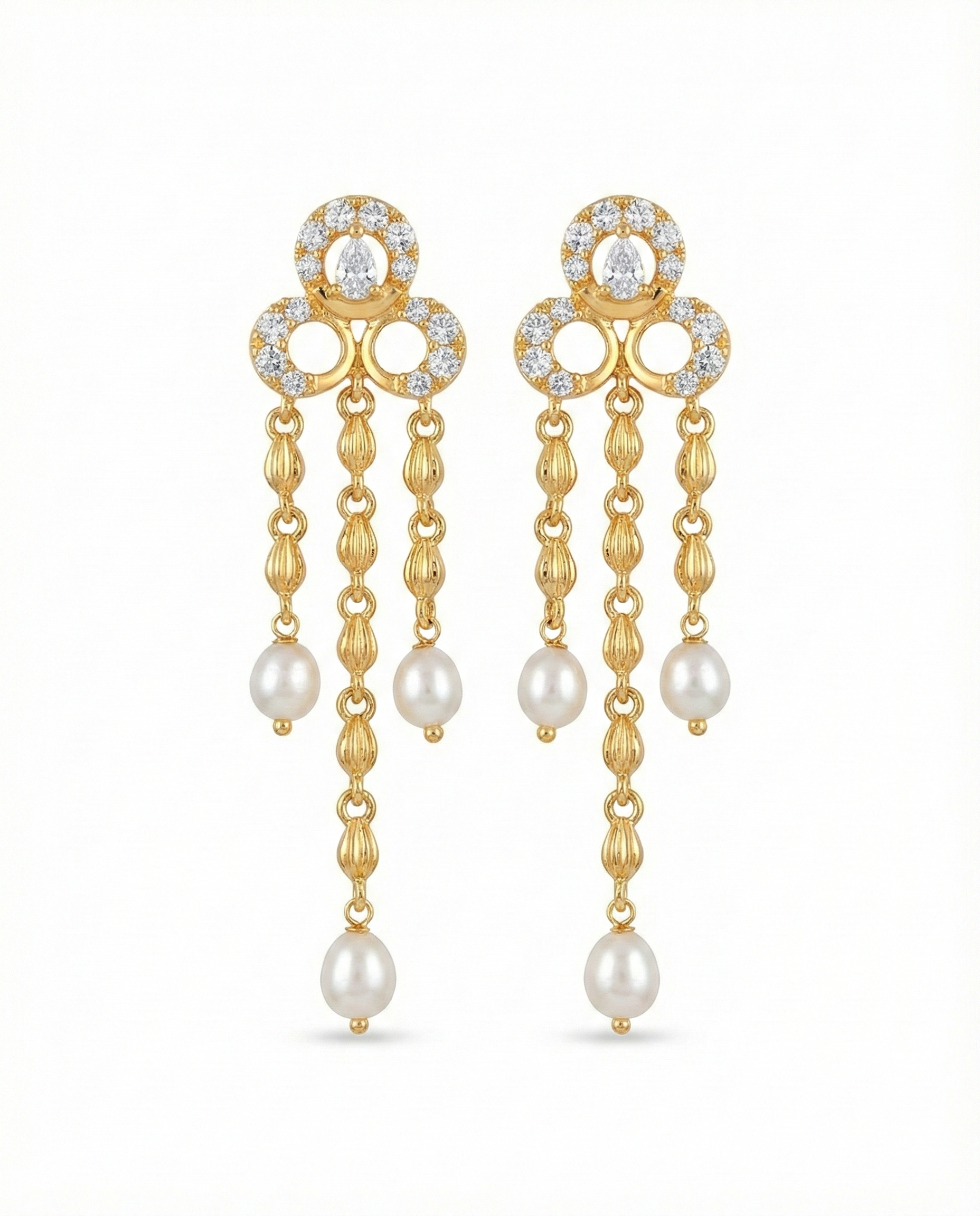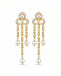 Make a grand entrance with these breathtaking triple-tier chandelier earrings. Combining classic pearl elegance with a dramatic, cascading silhouette, these earrings are designed to move with you, catching the light from every angle.