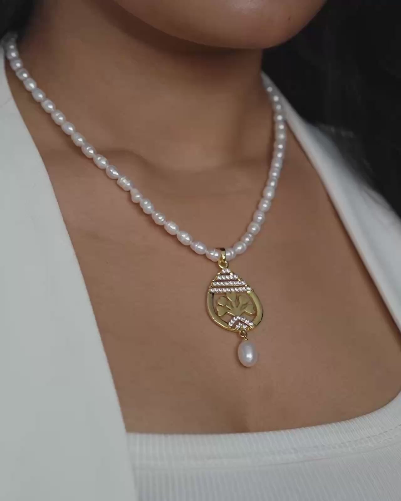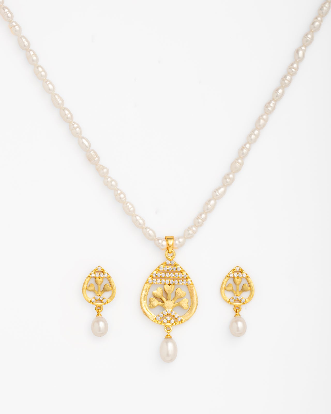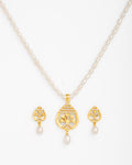 White Pearl Necklace Set with Gold Traditional Motif Pendant