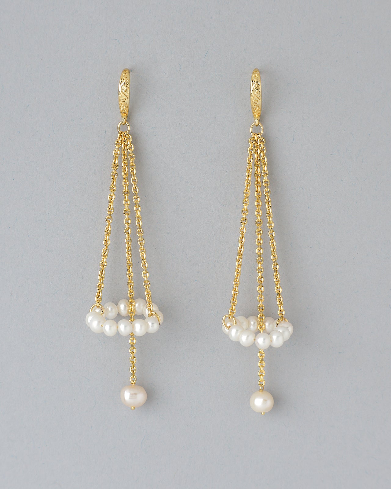 These pearl earrings radiate timeless charm, blending traditional craftsmanship with modern elegance. The luminous pearls are delicately set in gold toned filigree, making them a perfect accessory for your Diwali celebrations.